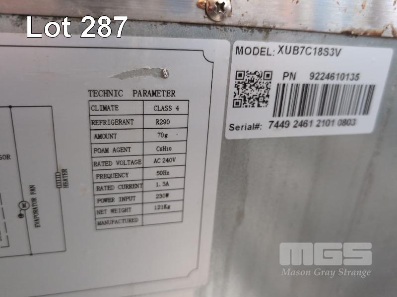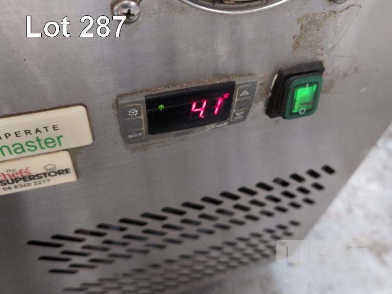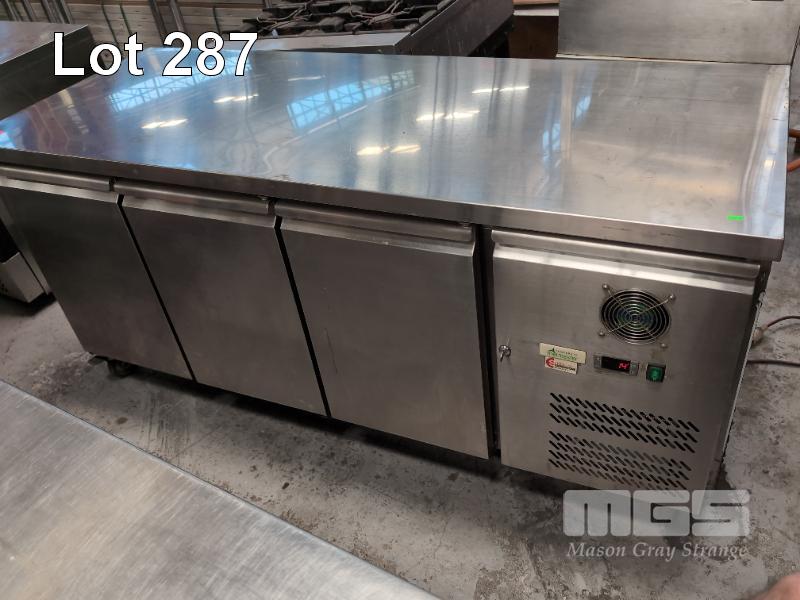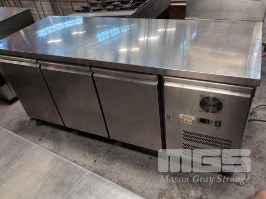 1 X THERMASTER COMMERICAL 3-DOOR STAINLESS STEEL UNDER BENCH REFRIGERATOR. MODEL XUB7C18S3V. 1,800 X 700 X 850 MM (W D H). 240V.