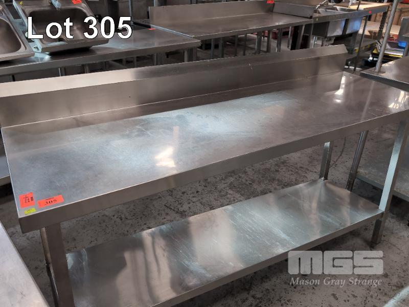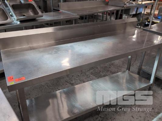 1 X STAINLESS STEEL COMMERCIAL KITCHEN PREP BENCH WITH UNDERSHELF AND SPLASHBACK. 1,800 X 600 X 900 MM (W D H)
