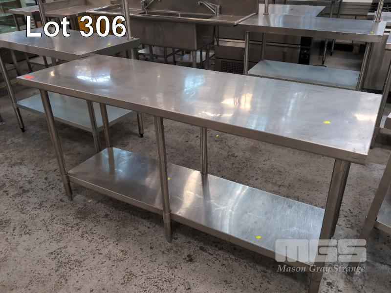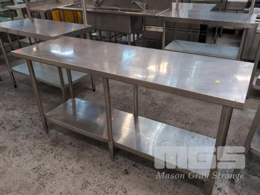1 X STANLESS STEEL COMMERCIAL KITCHEN PREP BENCH WITH UNDERSHELF AND SPLASHBACK. 1,825 X 610 X 900 MM (W D H)