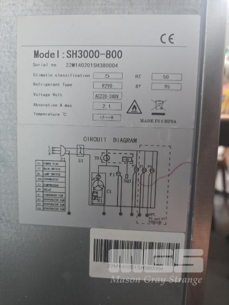 AG CHEFS PREP FRIDGE, MOD: SH3000-800, SERIAL: 22M140201SH380004, GOOD WORKING CONDITION, 240V 10AMP NOTE: LOCATED AT 13 ANNIE TCE, WASLEYS, SA (LOCAL GENERAL STORE)