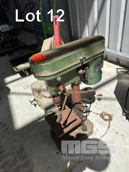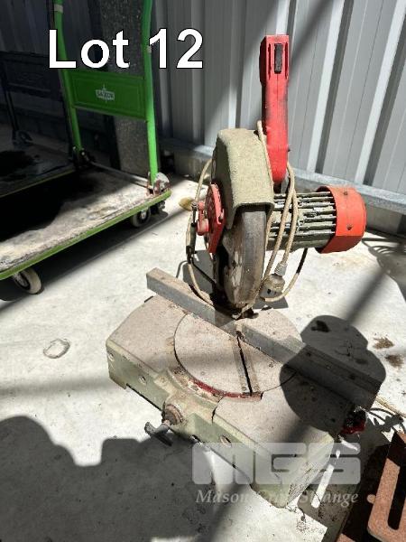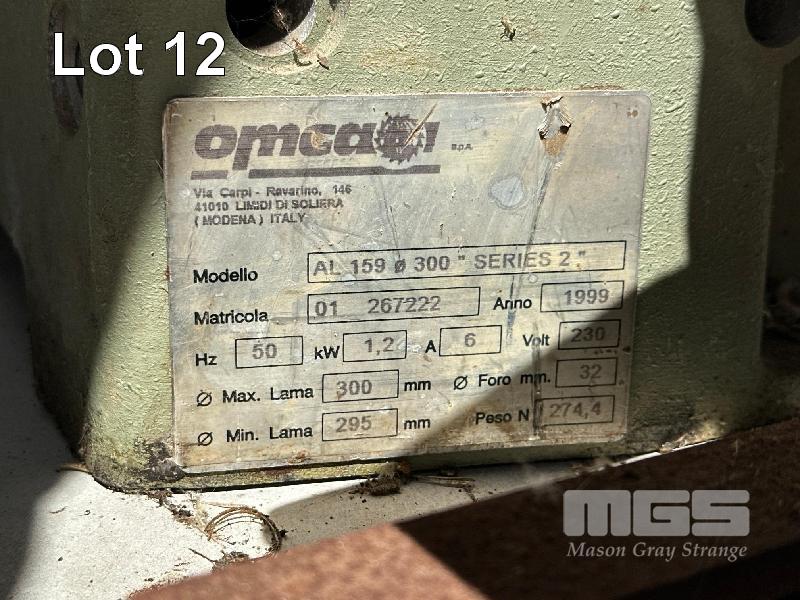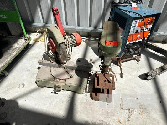 OMCA MITRE SAW, MOD: AL159300, 240V 10AMP PLUG, WITH SMALL PEDESTAL DRILL, 240V 10 AMP PLUG, CONDITION UNKNOWN