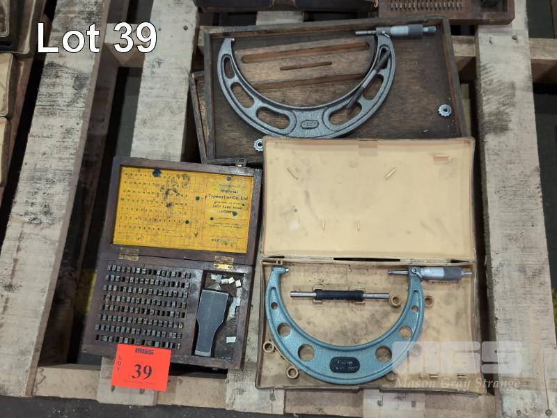 2 x MITUTOYO OUTSIDE MICROMETERS 5- 6"/7- 8" & IMPERIAL METAL PUNCH & TYPE