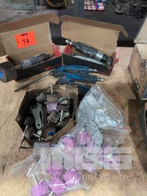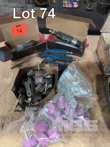 2 x INGERSOLL RAND 1/4" PNEUMATIC ANGLE GRINDERS, GRINDING DIES & 2 x AIR GUNS