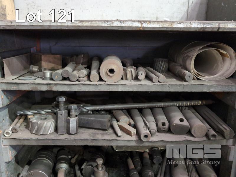 TIMBER CABINET & CONTENTS OF TOOLING, BORING BARS, REAMERS, MILLING CUTTERS