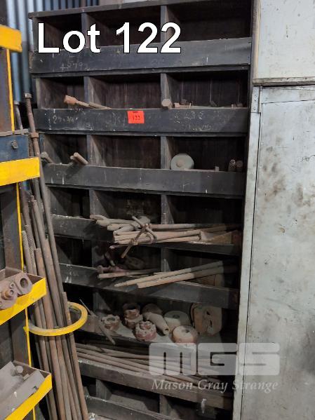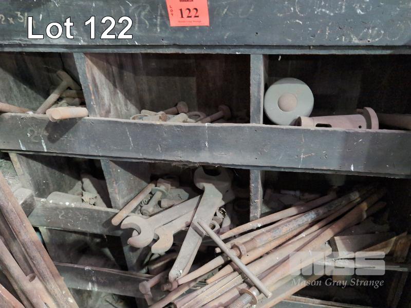 TIMBER CABINET & CONTENTS OF MILLING TOOLS, BOLTS & SPANNERS