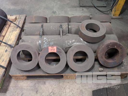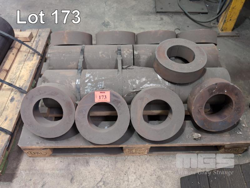 STEEL PIECES, 2 x EN36, 205mm DIA x 970mm & 9 x EN36 STEEL RINGS 260mm DIA x 80mm