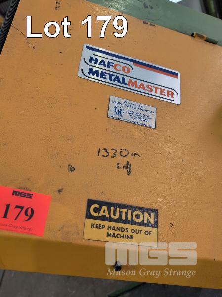 HAFCO METAL MASTER MOTORISED METAL CUTTING BANDSAW, MOD: 5-10AS, S/NO: 10246345 (2013) 415V, 3 PHASE WITH ROLLER FEED STANDS, 1500 x 250mm/2800 x 250mm