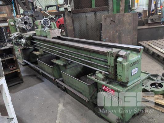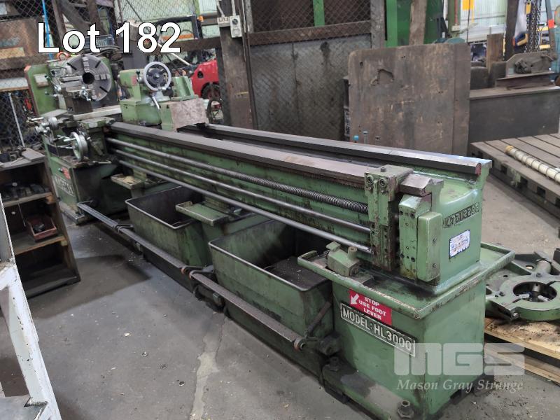 KINGSTON AGH MOTORISED ENGINEERS CENTRE LATHE, MOD: HL 3000, 80mm HOLLOW SPINDLE, 300mm CENTRE HEIGHT, 3200mm BETWEEN CENTRES, MAGNESCALE 2 AXIS DIGITAL CONTROLLER, 4 WAY TOOL POST, 3 & 4 JAW CHUCKS, STEADIES, 415V, 3 PHASE