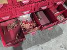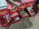 METAL 16 DRAWER CABINET & CONTENTS COPPER AND BRASS FITTINGS, STENCILS, CLAMPS , POP RIVET GUN