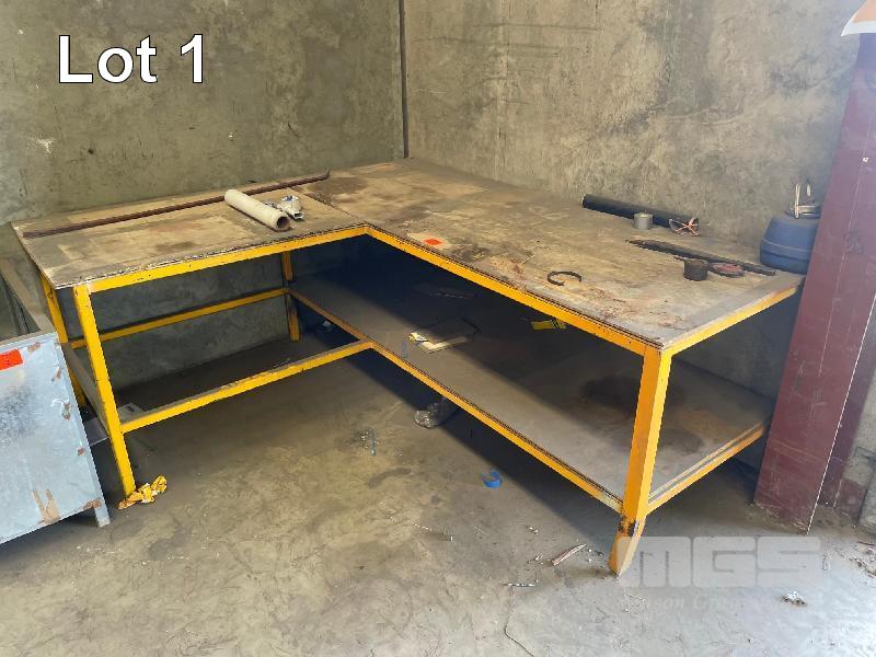 CORNER BENCH, STEEL FRAME, PARTICLEBOARD TOP, 2350 x 2100mm