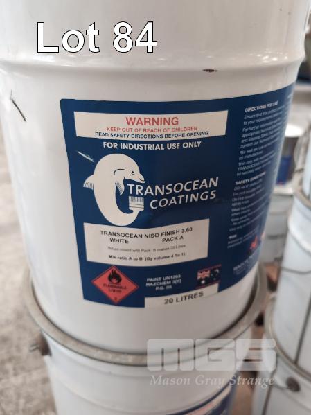 3 X 20 LITRE PAILS TRANSOCEAN COATINGS NISO FINISH 3.63 PACK A. COLOUR WHITE.