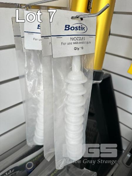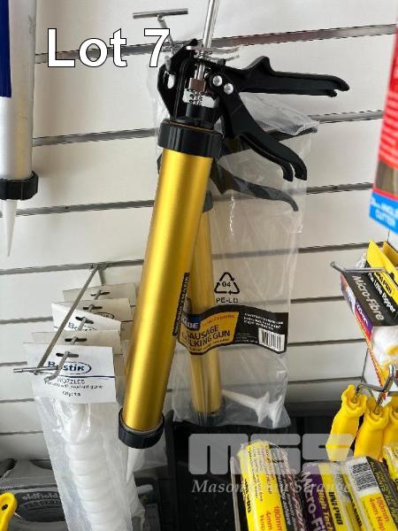 3 x CAULKING GUNS, UNI PRO, 4 x SAUSAGE GUNS, UNI PRO & BOSTIK NOZZLES, NEW