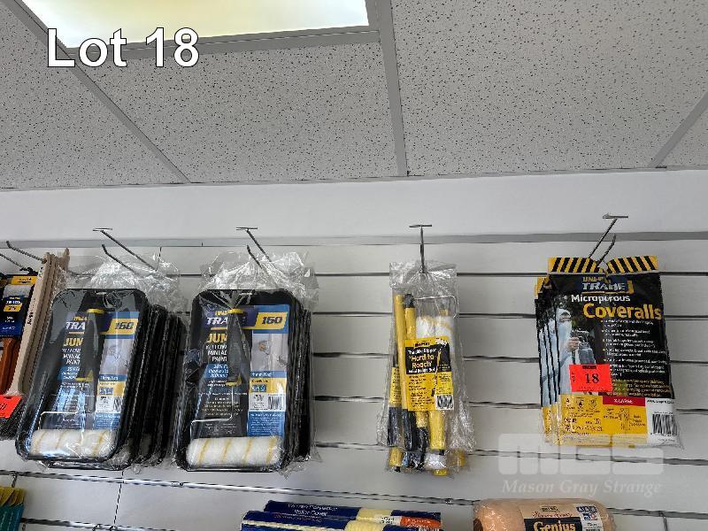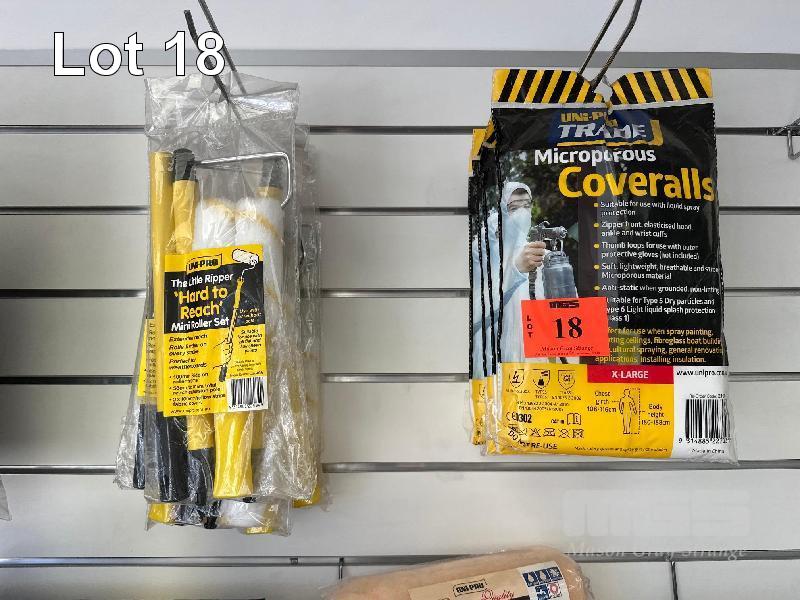 7 x PAINT ROLLERS & TRAYS, 160mm, NEW, 6 x ROLLERS, 100mm, UNI PRO & 4 x COVERALLS, UNI PRO