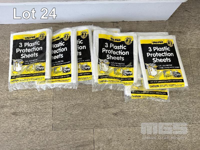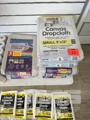 15 x CANVAS DROP SHEETS, NEW, UNI PRO & MONARCH & 10 x PACKETS PLASTIC PROTECTION SHEETS