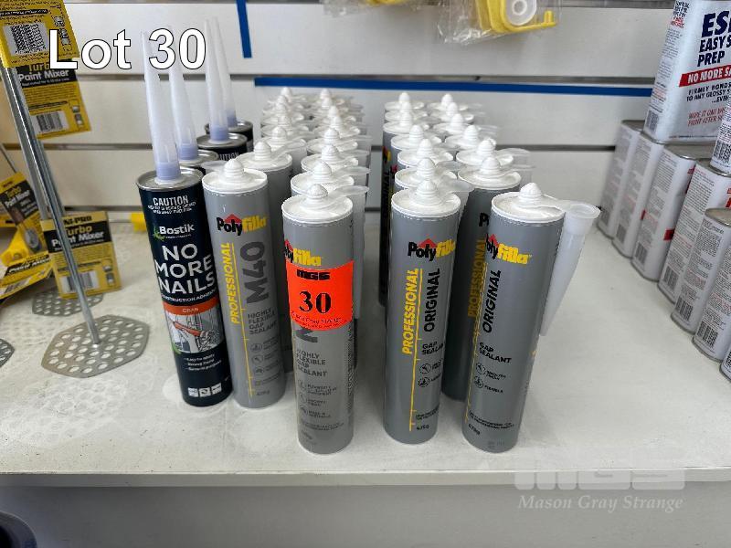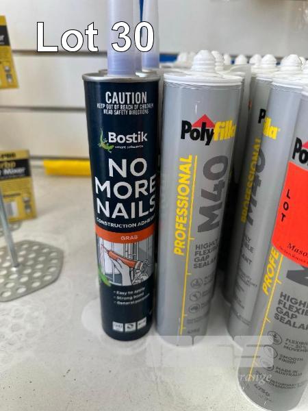 33 x TUBES GAP FILL & NO MORE NAILS, 25 x MINI ROLLER BUCKETS & EASY PAINT 4 LITRE LIDS