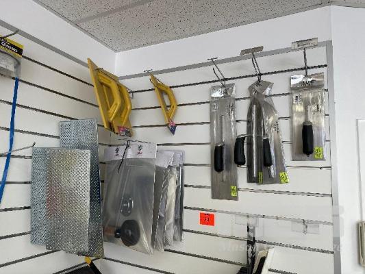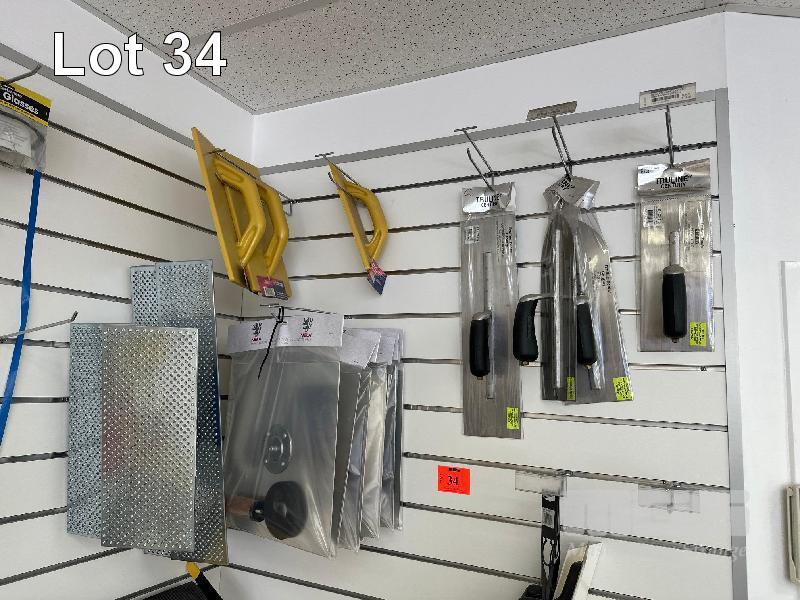 9 x ASSORTED TROWELS, TRUELINE, 6 x MOVING TROWELS, 4 x ABRASIVE FLOATS & 5 x KUBALA SCOOPS, 150mm