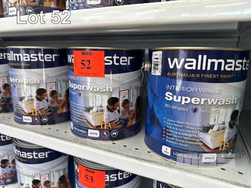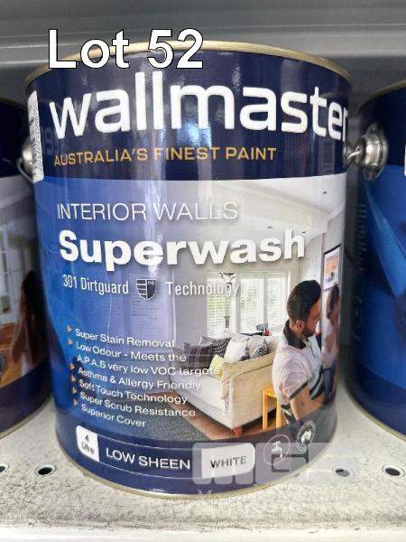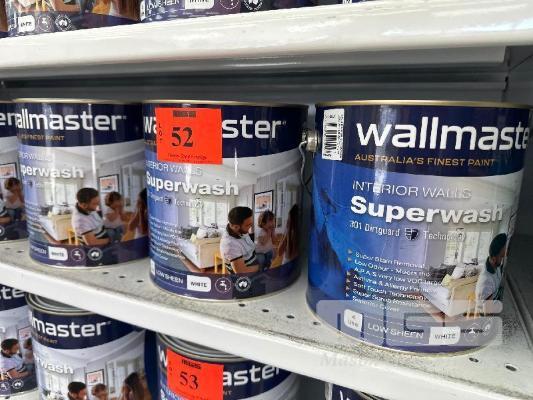 6 x TINS, WALLMASTER SUPERWASH LOW SHEEN WHITE, 4 LITRE