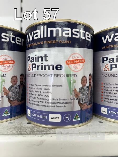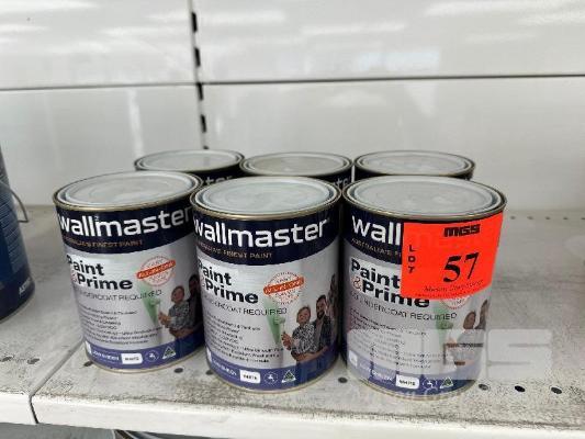6 x TINS, WALLMASTER PAINT PRIME LOW SHEEN WHITE, 1 LITRE