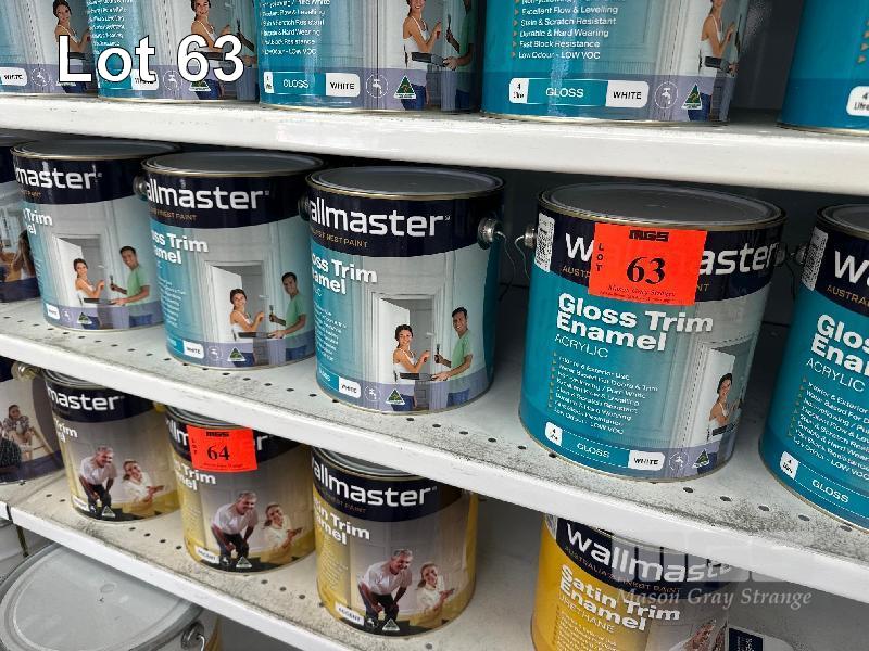 6 x TINS, WALL MASTER, 4 LITRE GLOSS TRIM ENAMEL, ACRYLIC GLOSS WHITE