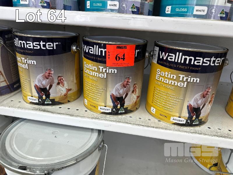 4 x TINS, WALL MASTER, 4 LITRE ENAMEL SATIN TRIM MID BASE & SATIN & 1 x 10 LITRE TIN ACCENT