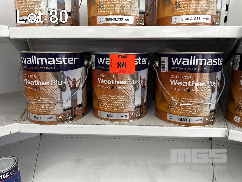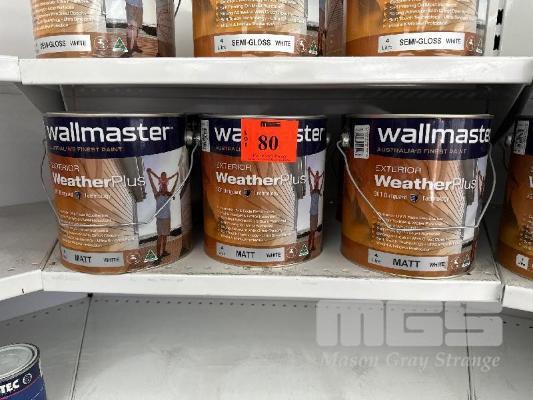 5 x TINS, WALLMASTER, 4 LITRE SUPERIOR WEATHER PLUS MATT WHITE