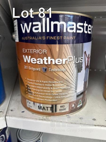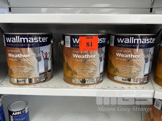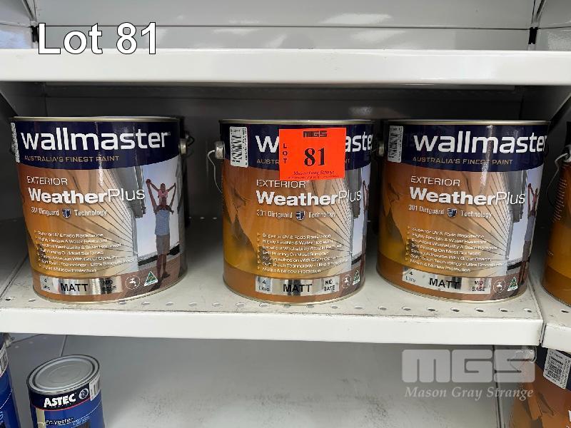 5 x TINS, WALLMASTER, 4 LITRE SUPERIOR WEATHER PLUS MATT ACCENT BASE