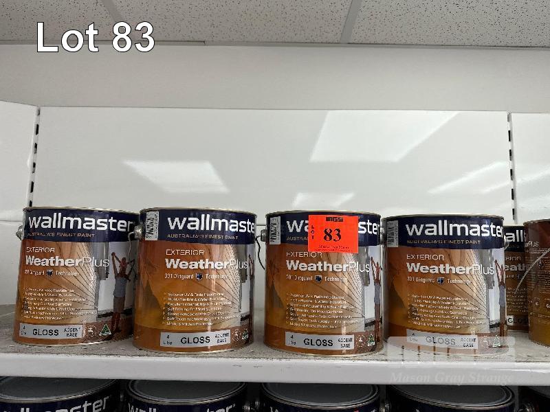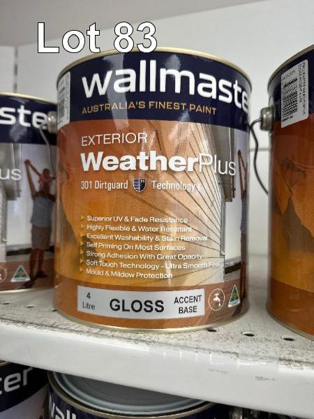 4 x TINS, WALLMASTER, 4 LITRE EXTERIOR GLOSS ACCENT BASE