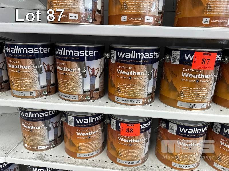 6 x TINS, WALLMASTER, 4 LITRE EXTERIOR LOW SHEEN MID BASE