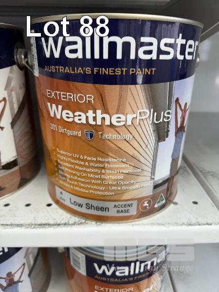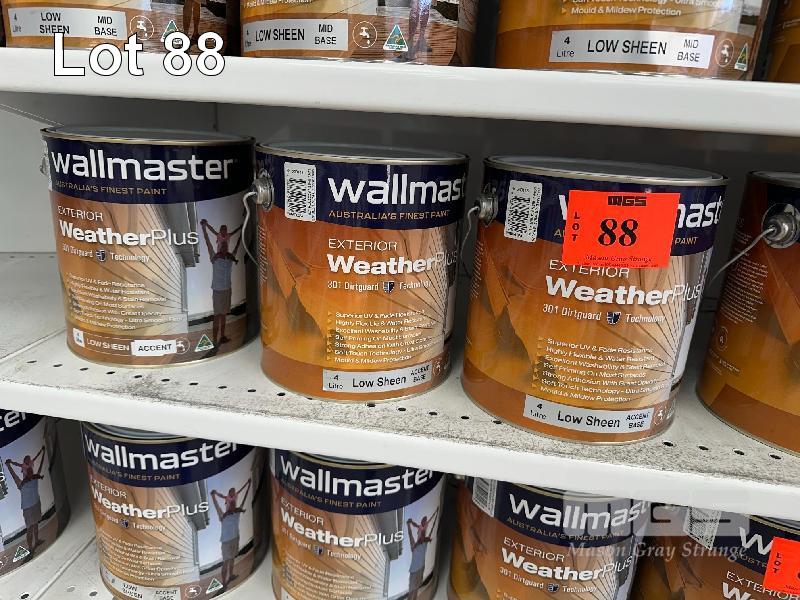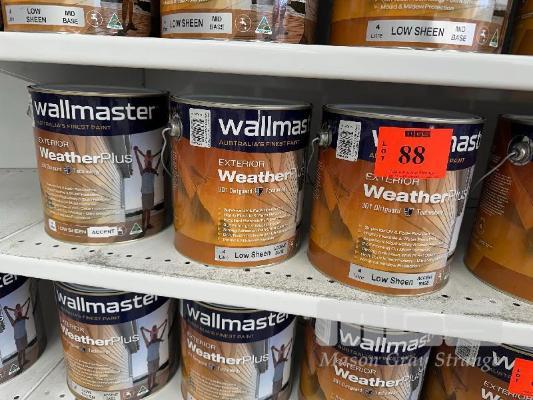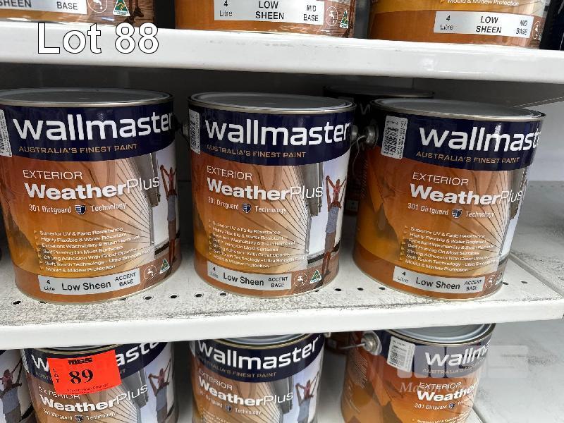 7 x TINS, WALLMASTER, 4 LITRE EXTERIOR WEATHER PLUS LOW SHEEN ACCENT BASE