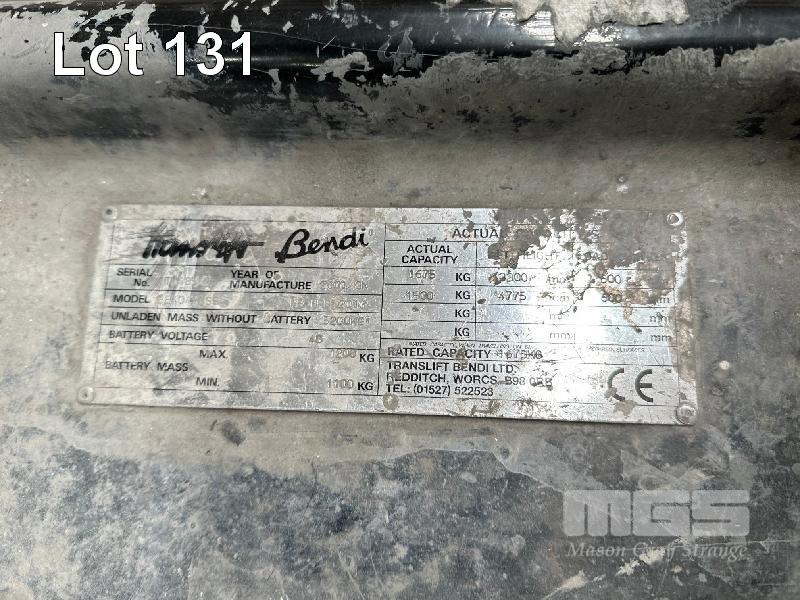 ARTICULATED ELECTRIC FORKLIFT, BENDI MOD: BE4047XSS DOM: 2001 S/NO: TL4055R 4 STAGE 1,200kg MAX LOAD WITH CHARGER