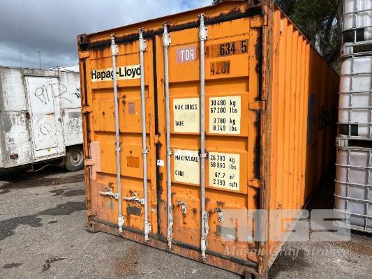 SHIPPING CONTAINER, 40' ORANGE, GOOD CONDITION MAX PAYLOAD: 26,700kg, 67.7m3 2 x SMALL HOLES IN ROOF