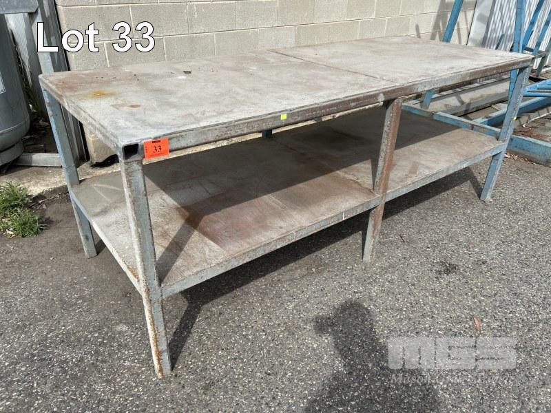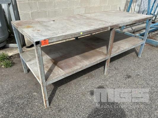 WORK BENCH, 9500 x 2300 x 900mm (H), HEAVY DUTY STEEL, PLATE TOP, 2 TIER