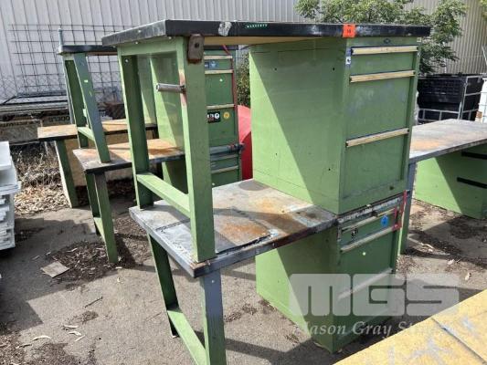 2 x WORKSHOP BENCHES, 1400 x 800 x 890mm (H) STEEL TOP, 3 DRAWER