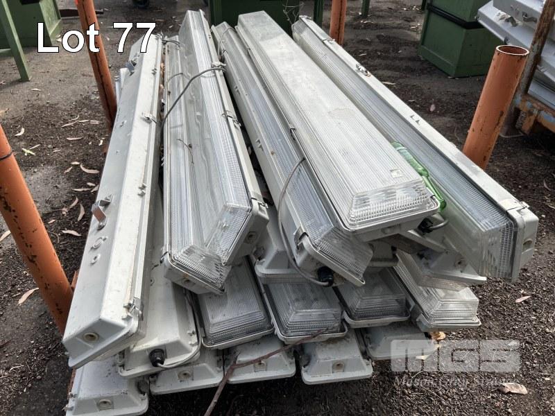 20 (APPROX) x FLURO LIGHT FIXTURES, WEATHERPROOF, TWIN BATTEN, 240V, 1600mm (L) 1 x STILLAGE