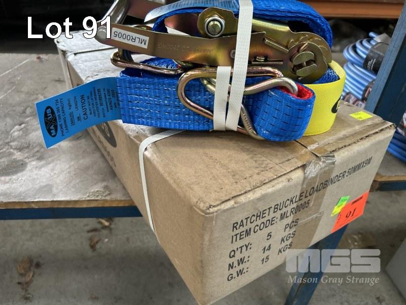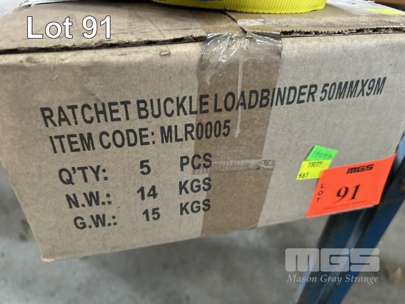 5 x RATCHET STRAPS, MAXUS MOD: MLR0005 LOAD BINDERS, 50mm x 9m (NEW) 1 x BOX