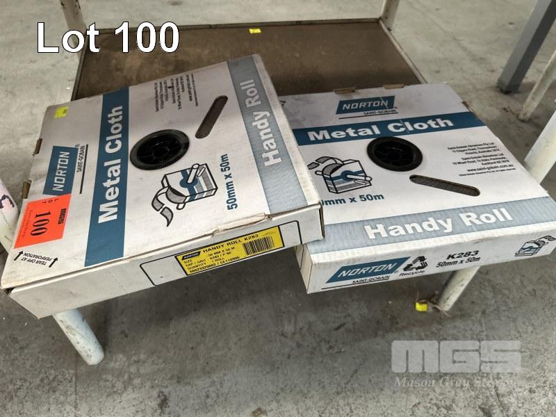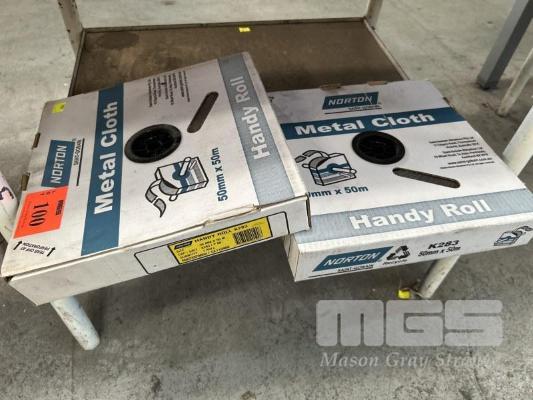 2 x ROLLS, METAL CLOTH, SANDPAPER ROLLS, NORTON, K283 GRIT P80 50mm x 50m NEW