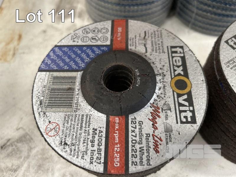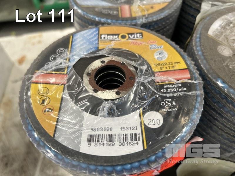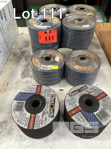 FLAP SANDING & GRINDING DISCS, FLEXOVIT GRIT 80 125 x 22.23mm, 10 x PACKS (10/PACK) & 22 x GRINDING DISCS, 127 x 7 x 22.2mm 3 x BOXES (10/BOX)