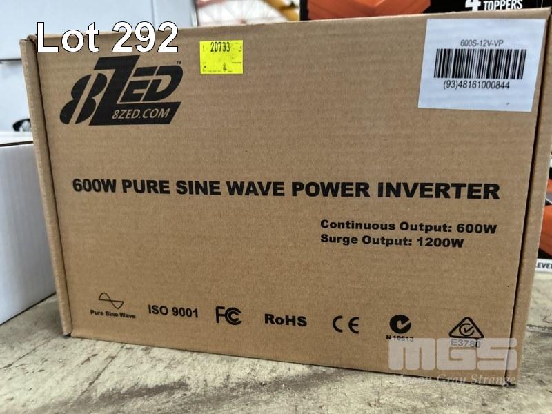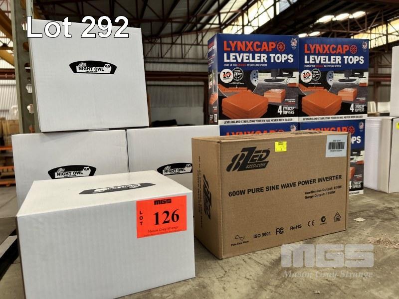4 x LED WORK LIGHTS, NIGHT OWL RECHARGEABLE, 4 x BOXES LEVELLER TOPS, LYNXCAP & POWER INVERTER 600w, 8ZED, PURE SINE WAVE, 12V DC TO 240V AC AS NEW