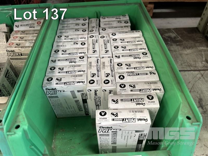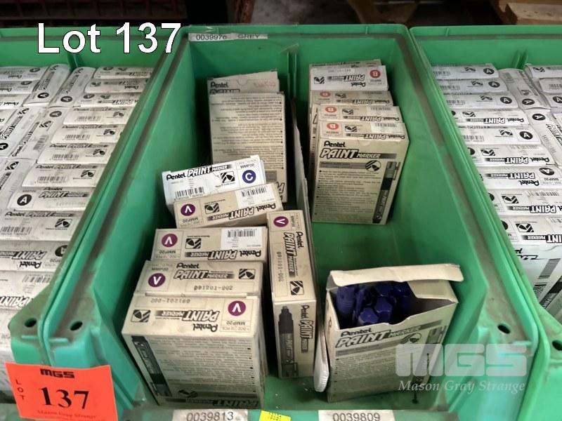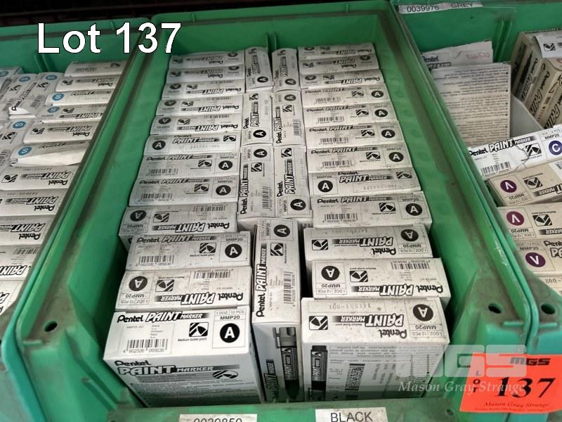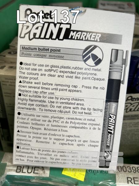 PAINT MARKER PENS, PENTEL MEDIUM BULLET POINT COLOURS INCLUDE, BLACK, BLUE, PURPLE, ETC 4 x TUBS AS NEW