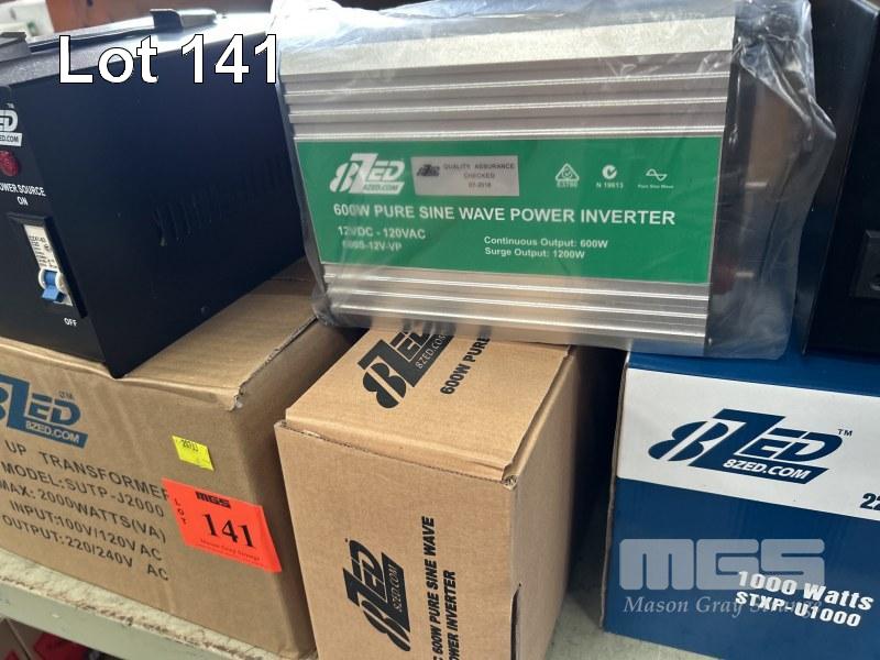 POWER INVERTER, 8ZED, PURE SINE WAVE 600w, 120VDC TO 120VAC & 2 x TRANSFORMERS 2000w, 120VAC TO 240VAC, 1000w, 240VAC TO 120VAC AS NEW