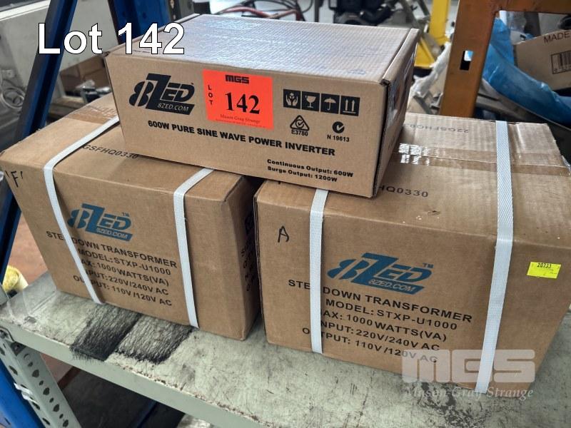 POWER INVERTER, 8ZED, PURE SINE WAVE 600w, 120VDC TO 120VAC & 2 x TRANSFORMERS 1000w, 240VAC TO 120VAC AS NEW