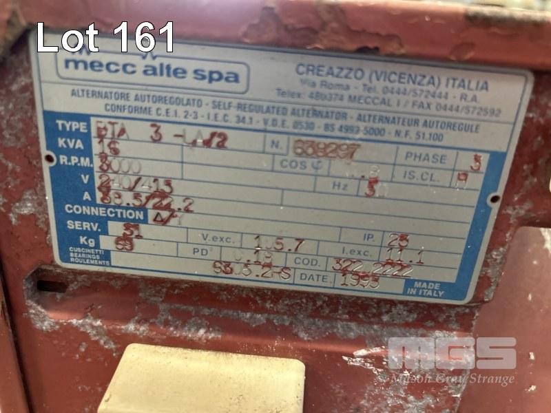 GENSET, MECC ALTE SPA 16KVA, 2 x 240V OUTLETS POWERED BY KOHLER TWIN CYLINDER PETROL ENGINE MOBILE, HOURS: 2,103 SHOWING