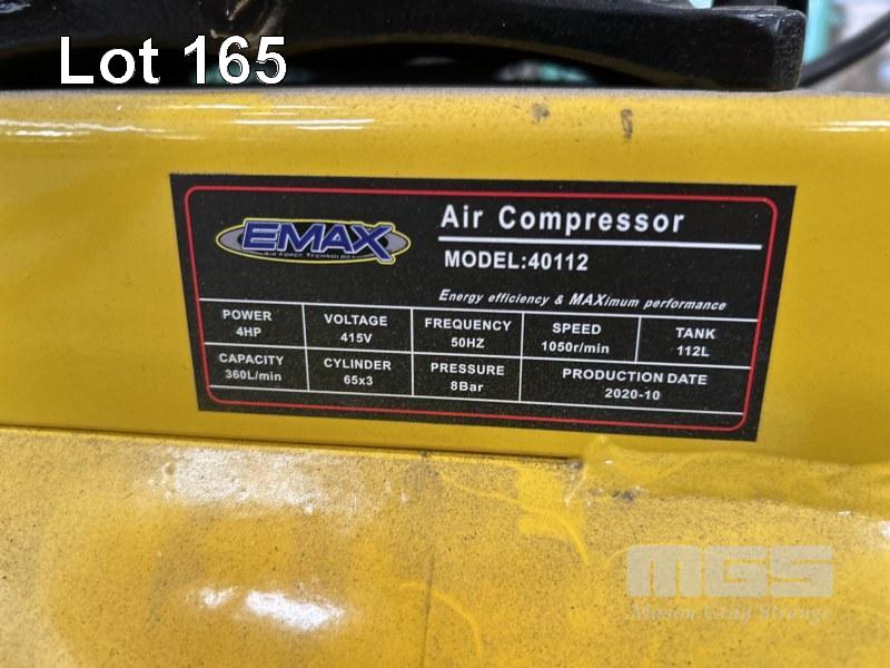 AIR COMPRESSOR, EXMAX MODEL: 40112 4HP, CAPACITY 366 l/MIN, 8BAR, 112 LITRE TANK, 415V