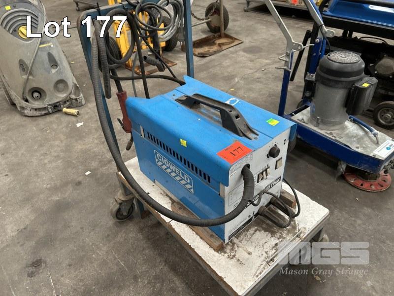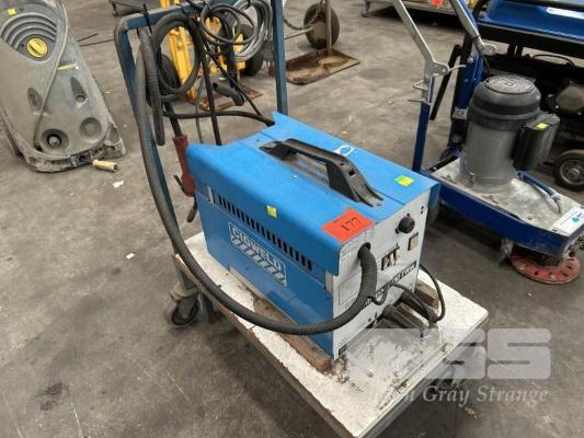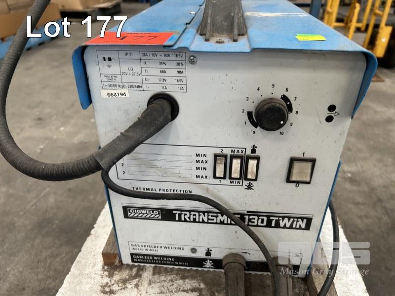 MIG WELDER, CIGWELD TRANSMIG 130 TWIN 240V WITH GAS REG, HAND PIECE, LEADS, TROLLEY MOUNTED