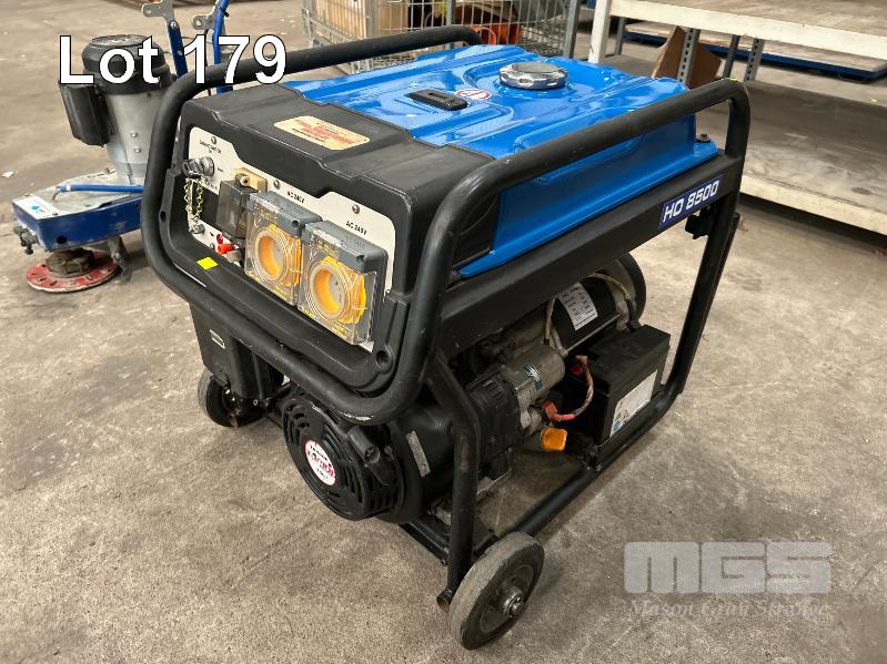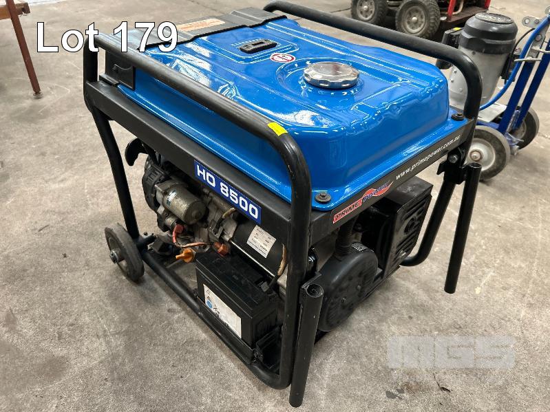 GENERATOR, PRIME POWER MOD: HO8500 OUTPUT: 7000w POWERED BY TURINI 15HP PETROL ENGINE 2 x 240V OUTLETS, KEY & PULL START, MOBILE