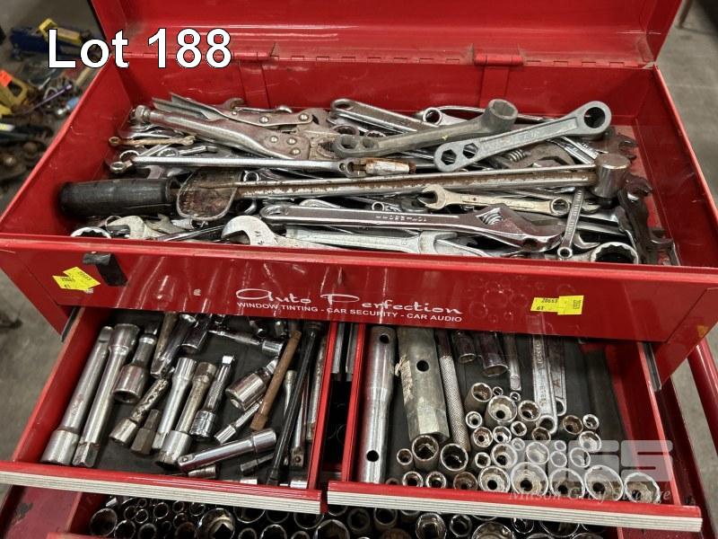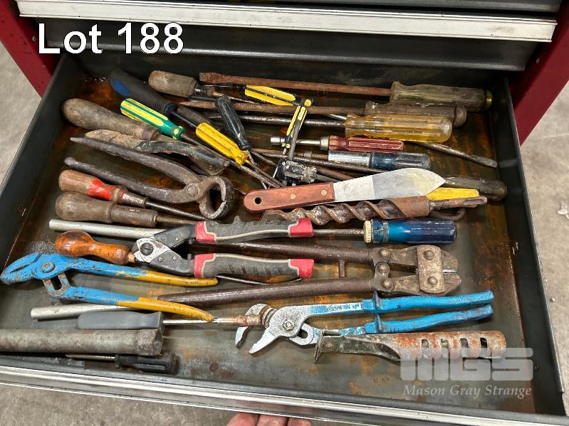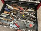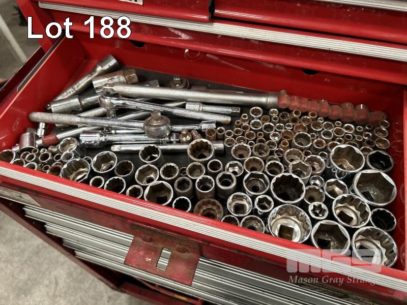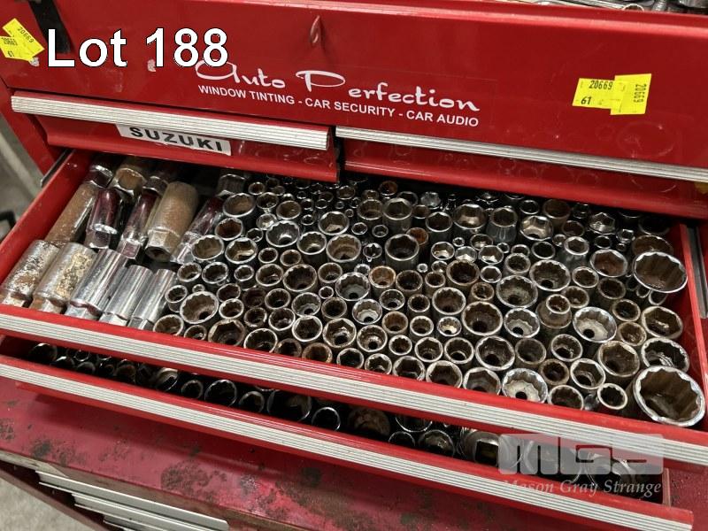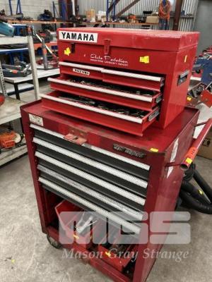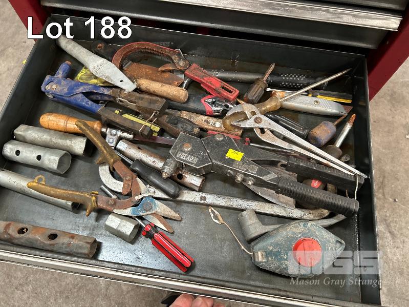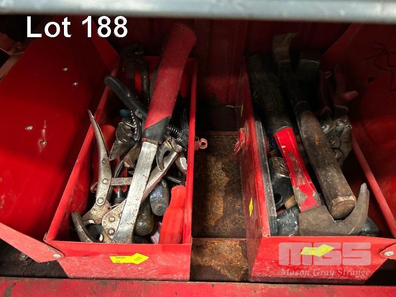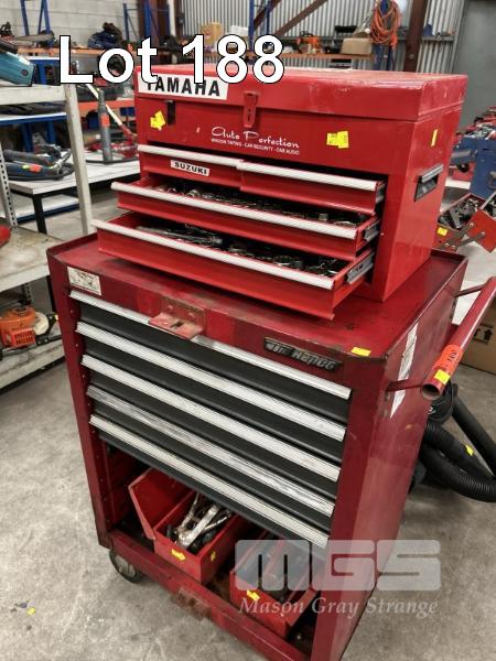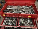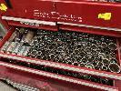 TOOL CABINET & CHEST, REPCO RED, 4 DRAWER CHEST & 5 DRAWER CABINET, MOBILE WITH 2 x SMALL TOOL BOXES & CONTENTS SOCKETS & SPANNER SETS, HAMMERS, DRIVERS, PLIERS, RIVET GUNS, ETC