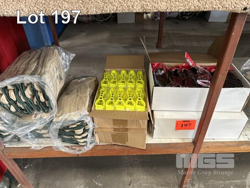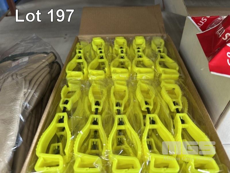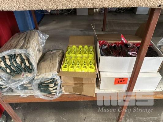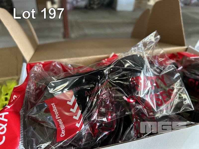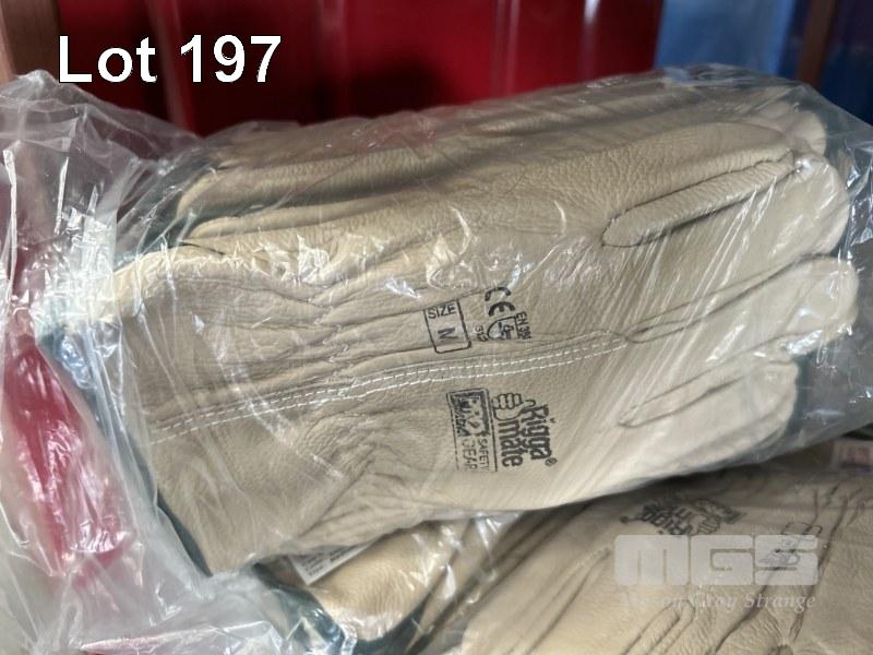 48 x PAIRS GLOVES, RIGGA MATE, LEATHER SIZE: M SAFETY GLASSES, C& A TINTED, 2 x BOXES (12/BOX), GLOVE BELT CLIPS, 2 x BOXES AS NEW