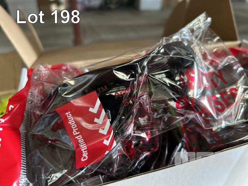 48 x PAIRS GLOVES, RIGGA MATE, LEATHER SIZE: M SAFETY GLASSES, C& A TINTED, 2 x BOXES (12/BOX), GLOVE BELT CLIPS, 2 x BOXES AS NEW