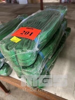 4 x LIFTING SLINGS, NOBLE & SONS 2 TONNE x 2.5m GREEN AS NEW