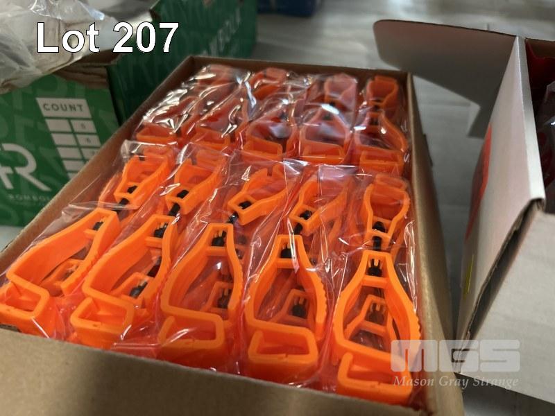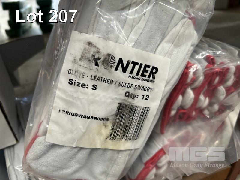 24 x PAIRS GLOVES, FRONTIER, LEATHER SUEDE SWAGGY SIZE: S 12 x PAIRS RIGGA MATE, LEATHER SIZE: M SAFETY GLASSES, C&A TINTED, 2 x BOXES (12/BOX) & GLOVE BELT CLIPS, 2 x BOXES AS NEW